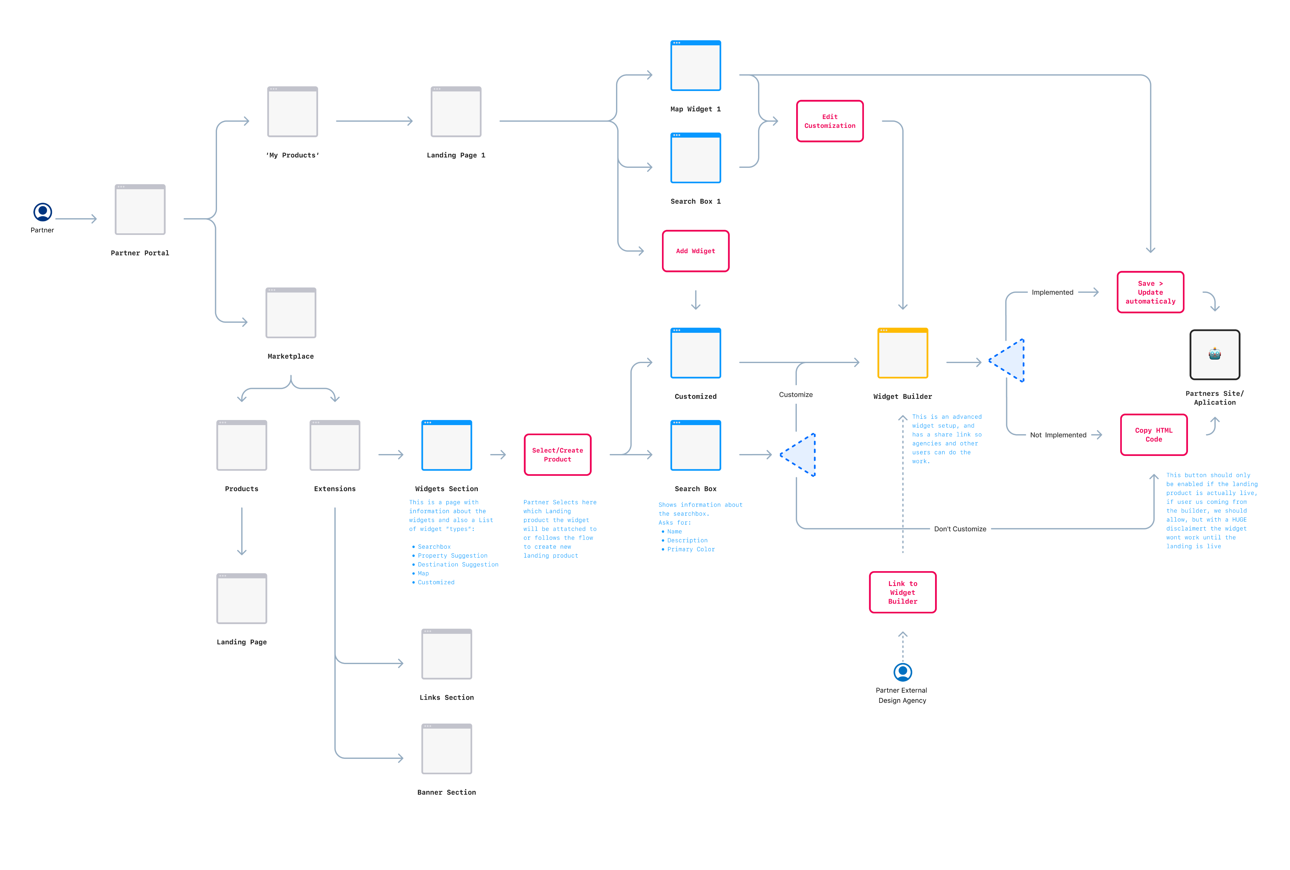 I guided Julia Caldas in breaking the partner widgets into individual components, mapping every possible configuration, and defining the flows needed for each widget so partners could implement them independently. We used this work as the foundation for development guidelines across all widget objects.